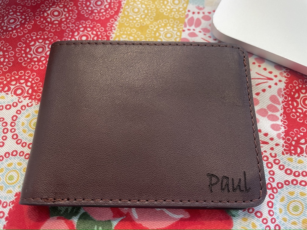 Our years of RVing have taught us both to love the practical gift…but, it’s fun to turn something practical into something really special and meaningful. For our 20th Anniversary, I got Paul a new wallet, but not just any wallet…I had my handwritten love note engraved in the leather. It turned out really beautiful. ❤️ You can check out the Etsy store I ordered it from here. I’ll show you the front of the wallet, but the love note is just for him. 😉